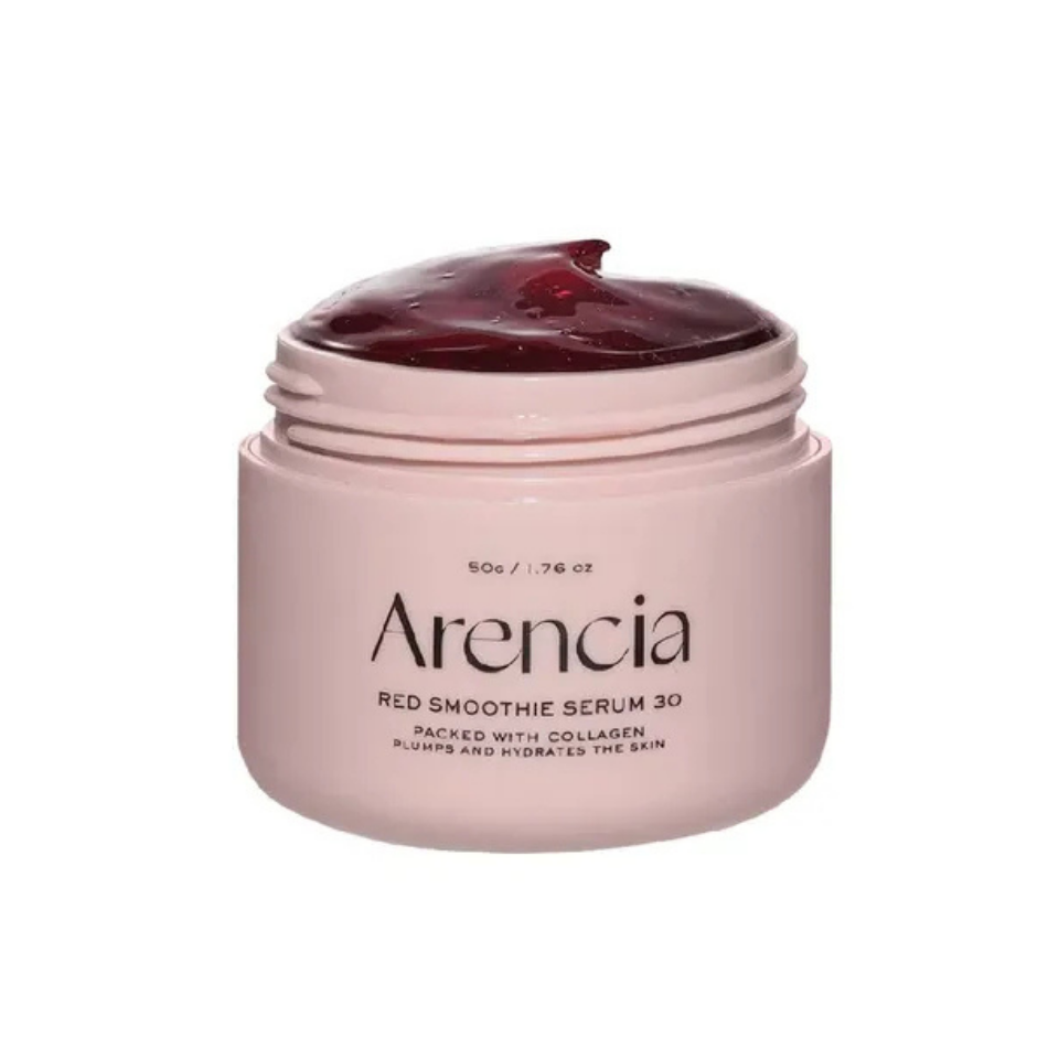 Le Red Smoothie Serum 30 d’Arencia est un masque de nuit hybride enrichi à 30% de collagène rouge, niacinamide et extrait de rose. Conçu pour raffermir, lisser et revitaliser la peau pendant le sommeil.